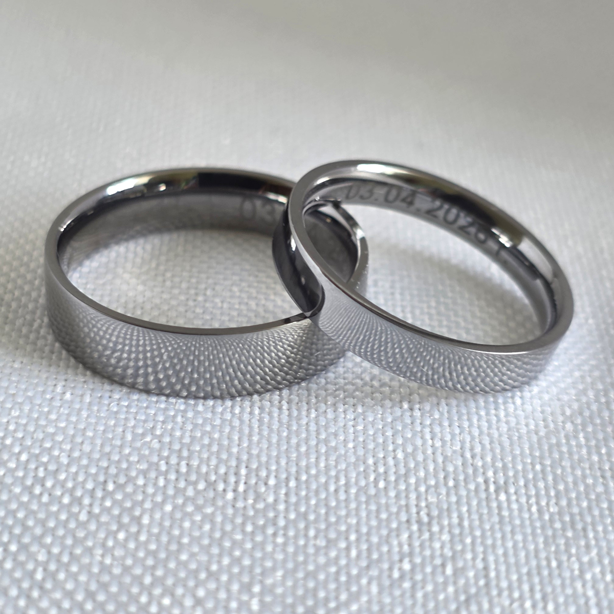 Obrączki ślubne wykonane z tantalu o profilu płaskim i wykończeniu polerowanym. Obrączki są nowe, specjalnie wyprodukowane na Państwa zamówienie.